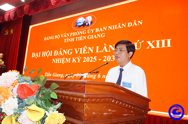 Chiều ngày 18/6, Đảng bộ Văn phòng Ủy ban nhân dân (UBND) tỉnh Tiền Giang tổ chức Đại hội đảng viên lần thứ XIII, nhiệm kỳ 2025 - 2030. Đây là sự kiện chính trị quan trọng, đánh dấu bước ngoặt trong quá trình xây dựng và phát triển của Văn phòng UBND tỉnh.