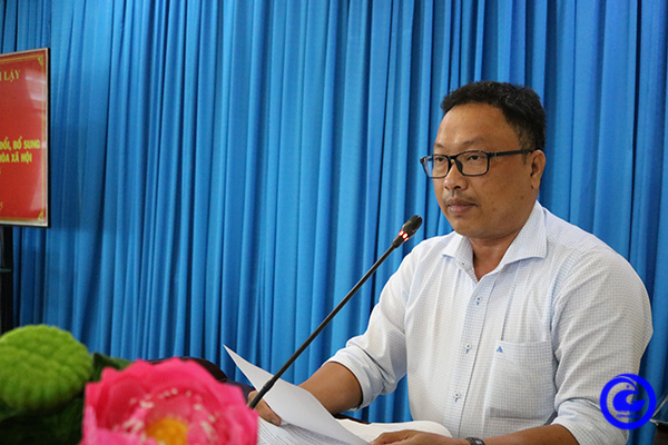 | Ông Trần Lý Ngự Bình, Phó Chủ tịch UBND huyện Cai Lậy phát biểu tại hội nghị. |